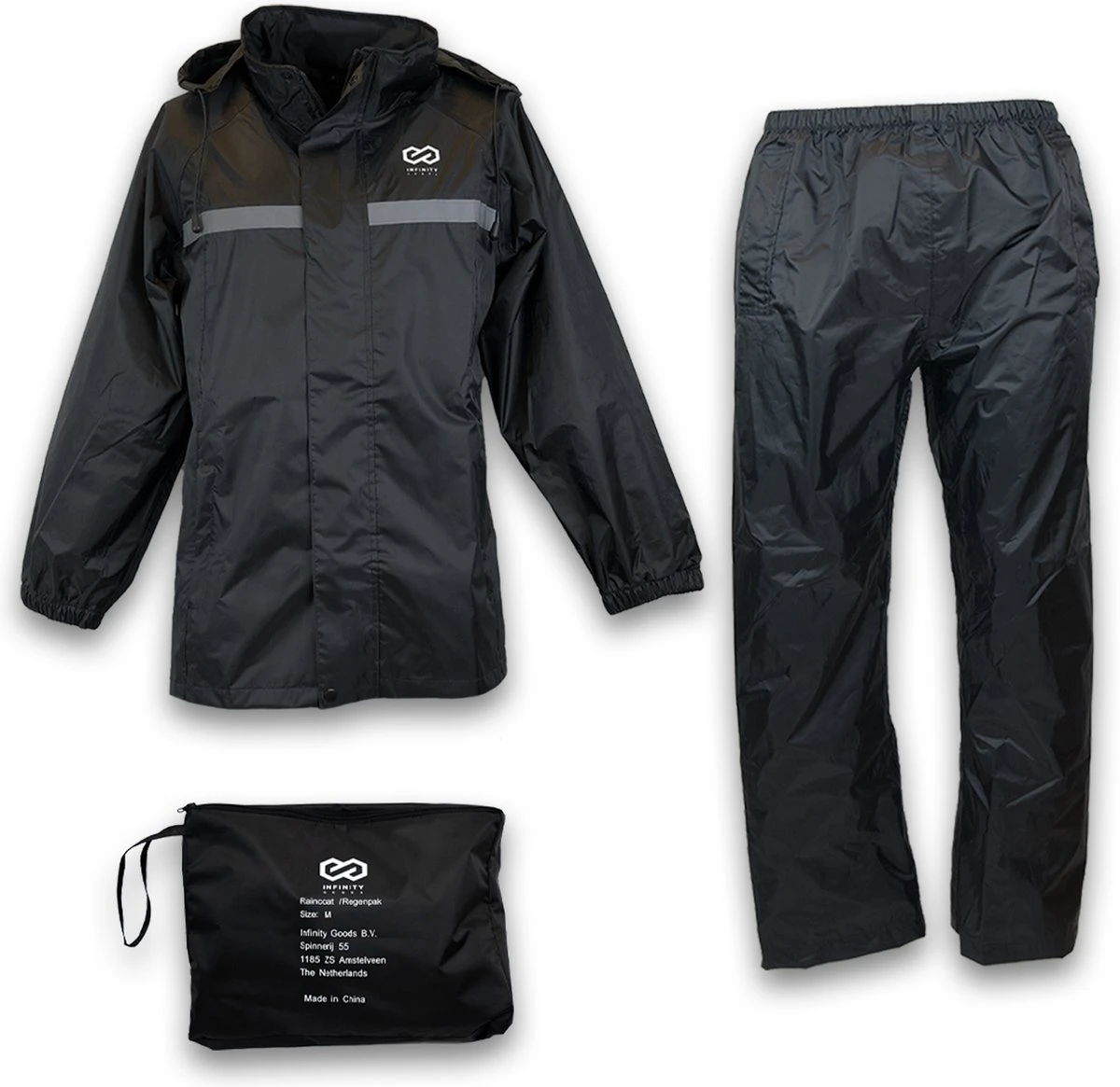 Infinity Goods Regenpak – Dames & Heren – Maat XL – Waterdicht & Ademend – Reflecterend – Zwart