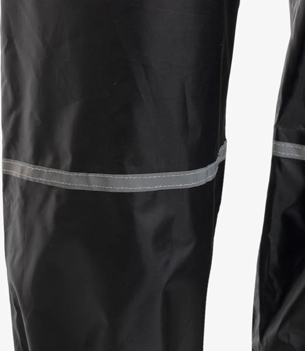 Zwarte regenbroek voor dames en heren uit de Mountain Peak collectie. Voorzien van een elastische tailleband en reflecterende accenten op de benen zodat je goed opvalt in het verkeer. De regenbroek is gemaakt van polyester en heeft een waterdichtheid van 2000mm.
