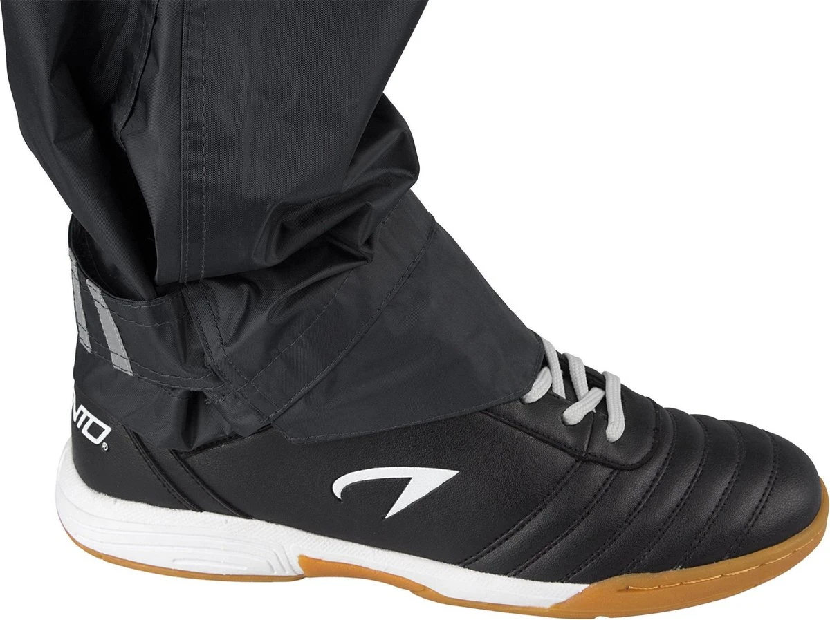 Nooit meer een nat pak met dit Ralka Regenpak! Dit 2-delige regenpak gemaakt van 190T polyester is 2000 mm gecoat en heeft overal getapete naden. Het jack heeft een capuchon in de kraag. In de zoom aan de onderzijde zit een elastisch koord met stopper en klittenband bij de manchetten zodat het jack goed aansluit. De ventilatie openingen op de rug zorgen voor extra draagcomfort. De broek heeft een elastische tailleband en de onderzijde van de pijp kan versteld worden m.b.v. klittenband. Met de reflectie strepen voor- en achter ben je ook in de zwaarste storm goed zichtbaar! De set wordt geleverd in een handig draagtasje.