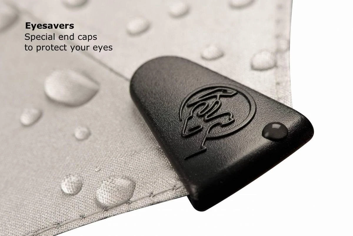 De gepatenteerde ribben zijn gemaakt van verschillende premium materialen zoals versterkte glasvezel, om duurzaamheid bij sterke wind te garanderen en het hoogwaardige aluminium frame maakt de paraplu licht en gemakkelijk vast te houden.
